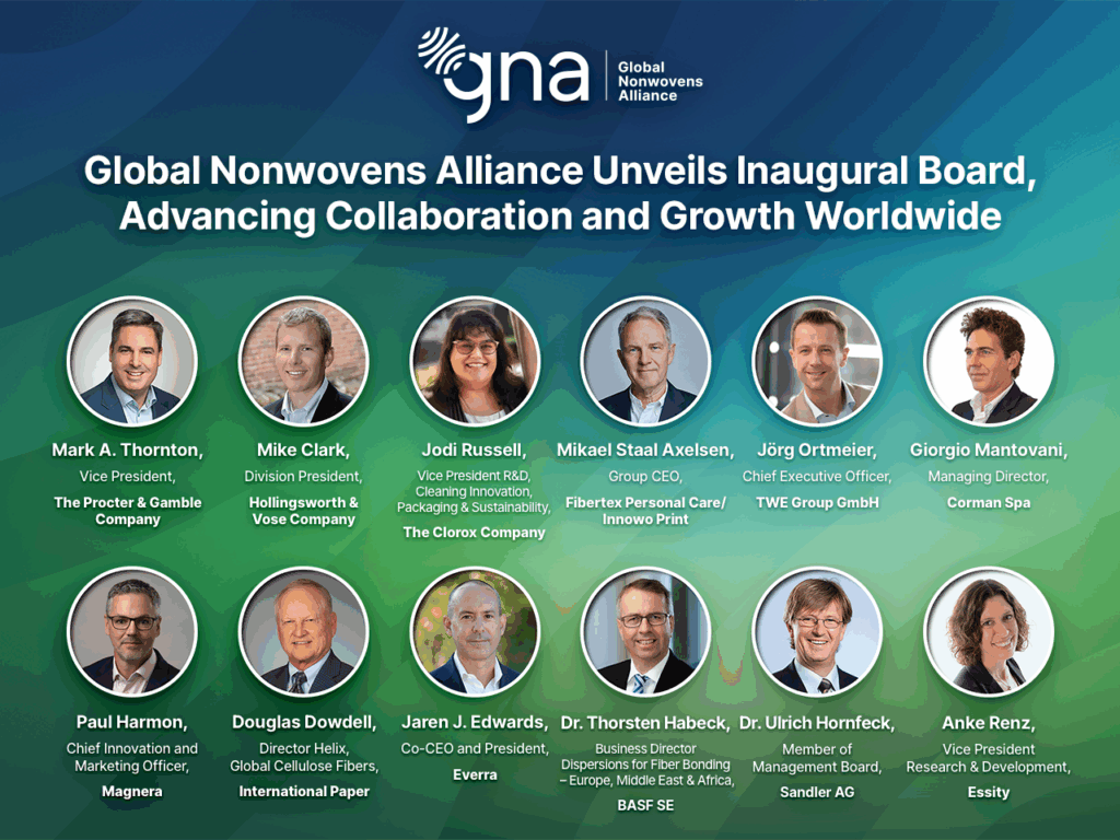 “This Board reflects the global scale and diversity of the nonwovens sector,” said Murat Dogru, General Manager of EDANA. “By combining perspectives from across regions and markets, the GNA is equipped to set a forward-looking agenda that prioritizes sustainability, innovation, and long-term growth for our industry worldwide.”