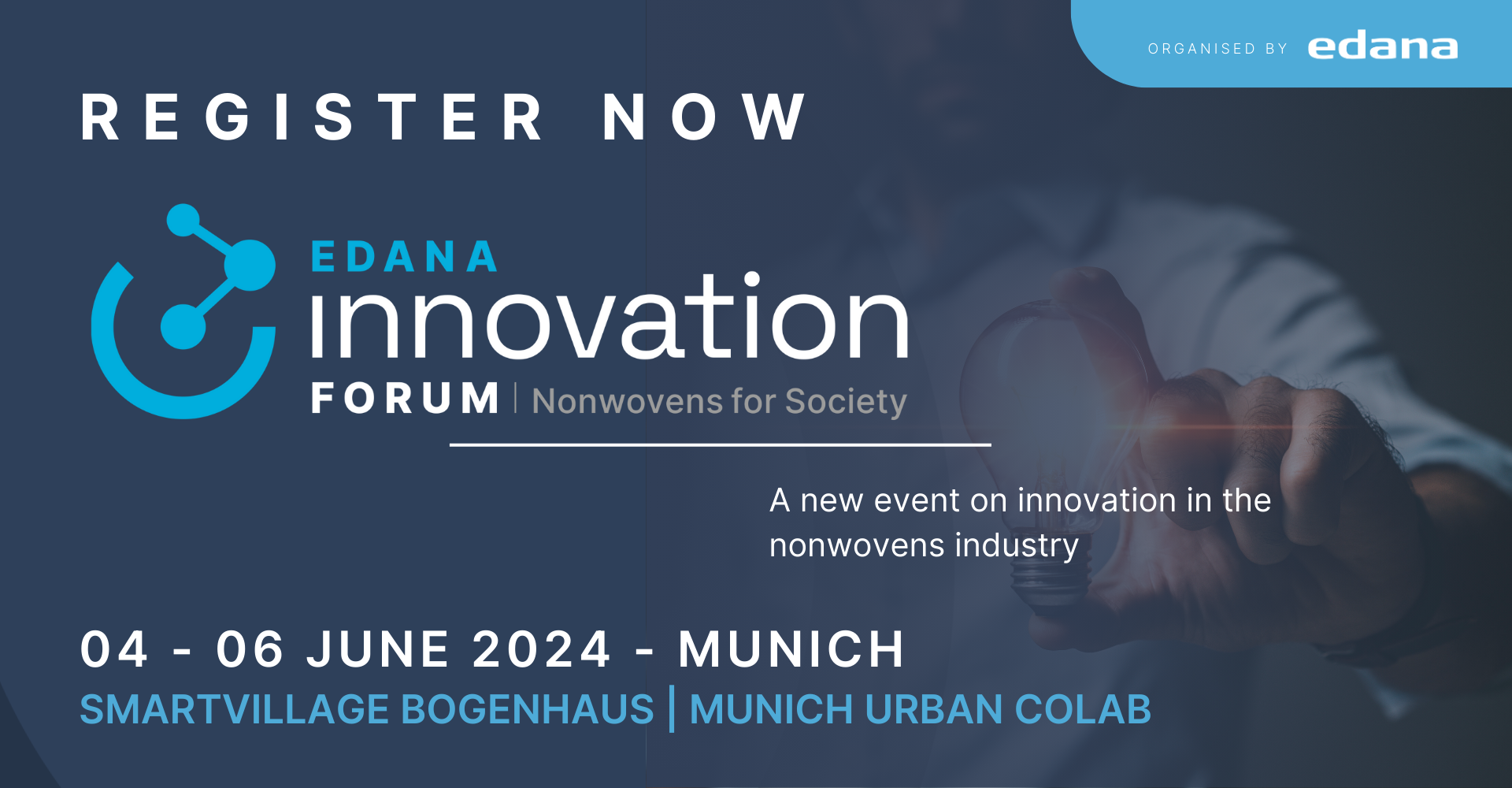 FOR IMMEDIATE RELEASE: April 2024 – Brussels, Belgium – From 4-6 June 2024, EDANA will organize its first innovation forum. The inception of this new event emerged from the merger of two long-standing EDANA events: the International Nonwovens Symposium (INS) and the Nonwovens Innovation Academy (NIA). Historically, the nonwovens sector has been synonymous with innovation, furnishing society with adaptable materials that benefit our daily routines, spanning healthcare, construction, filtration, household, and civil engineering among other sectors.